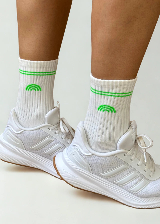 Meia Rainbow Poliamida Branca Listra Verde Neon