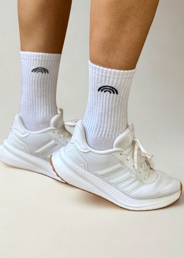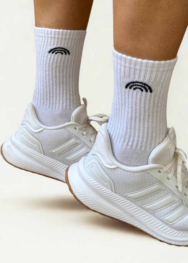Meia Rainbow Algodão Branca Logo Preta