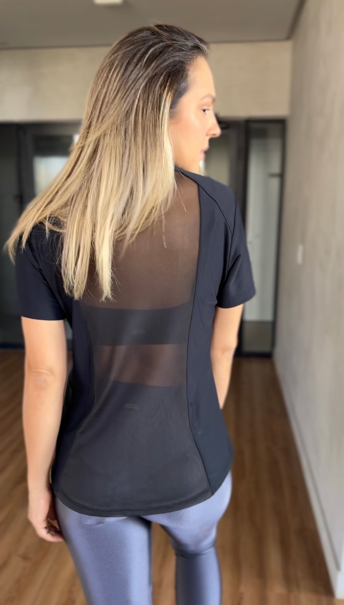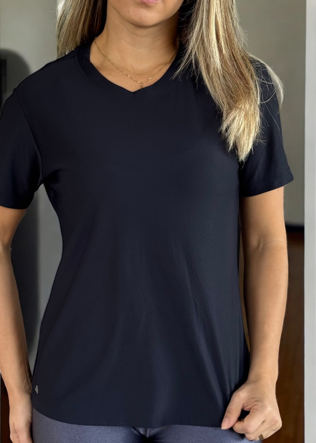Sua malha em micropiquet de poliamida oferece um visual minimalista e elegante, perfeito para produções versáteis — do look esportivo ao casual chic.