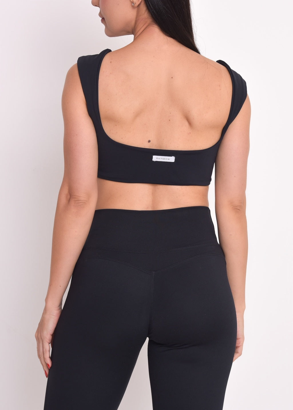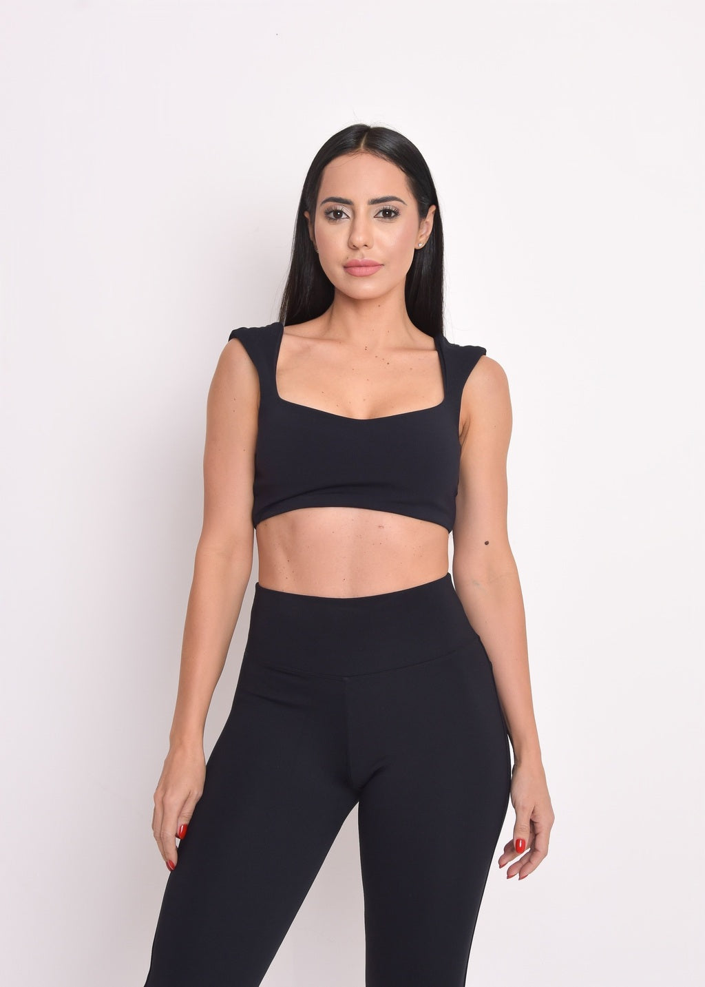 Com um design inspirado no corte alfaiataria, a peça apresenta um decote romântico que valoriza o colo com delicadeza. Suas alças largas com elástico nas laterais proporcionam sustentação segura, enquanto as costas abertas garantem ventilação e liberdade total de movimento, sendo ideal para treinos de membros superiores.