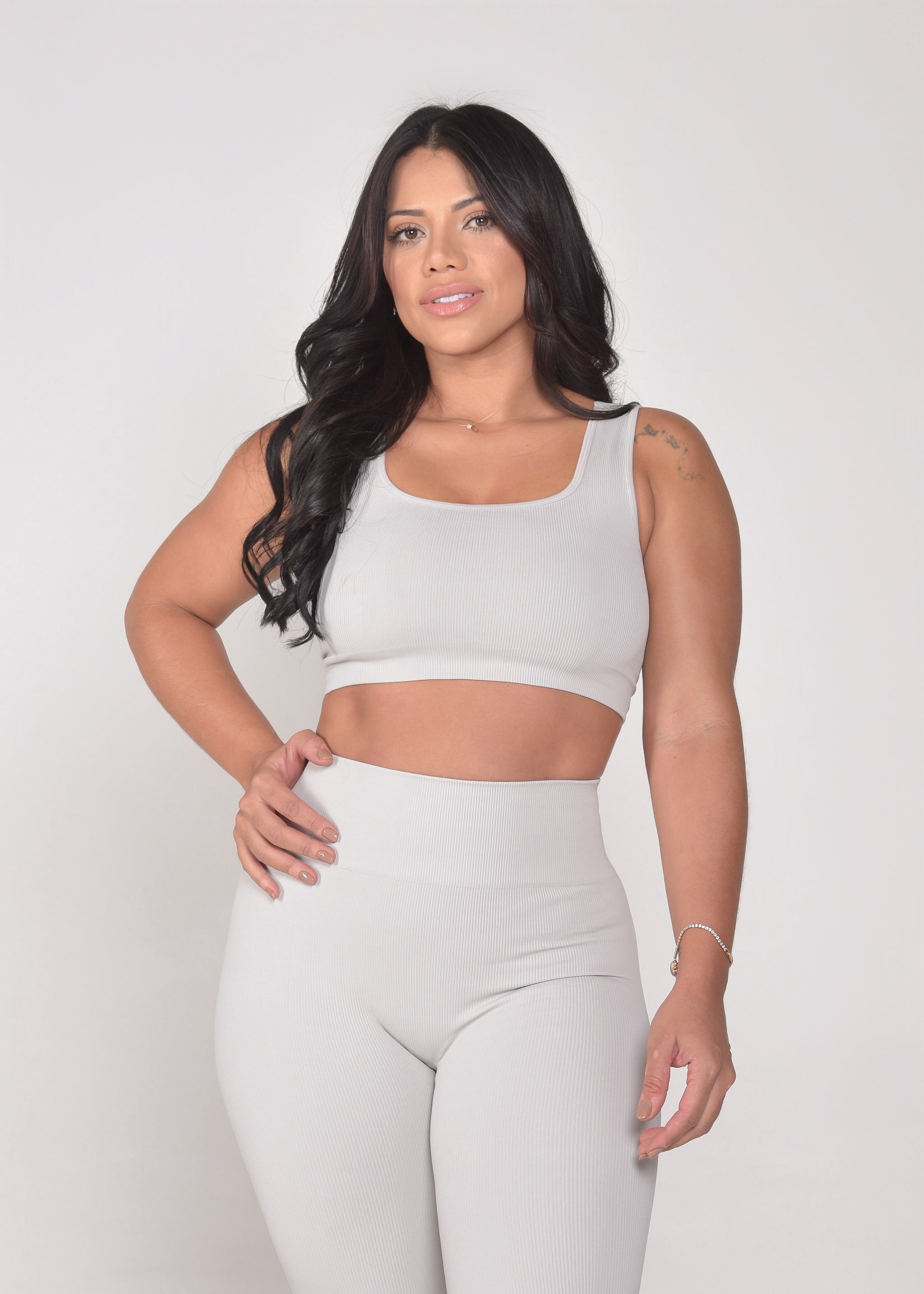O top de malha canelada oferece sustentação e conforto, enquanto o acabamento seamless proporciona um ajuste perfeito ao corpo, sem marcar ou incomodar, adaptando-se às suas curvas.