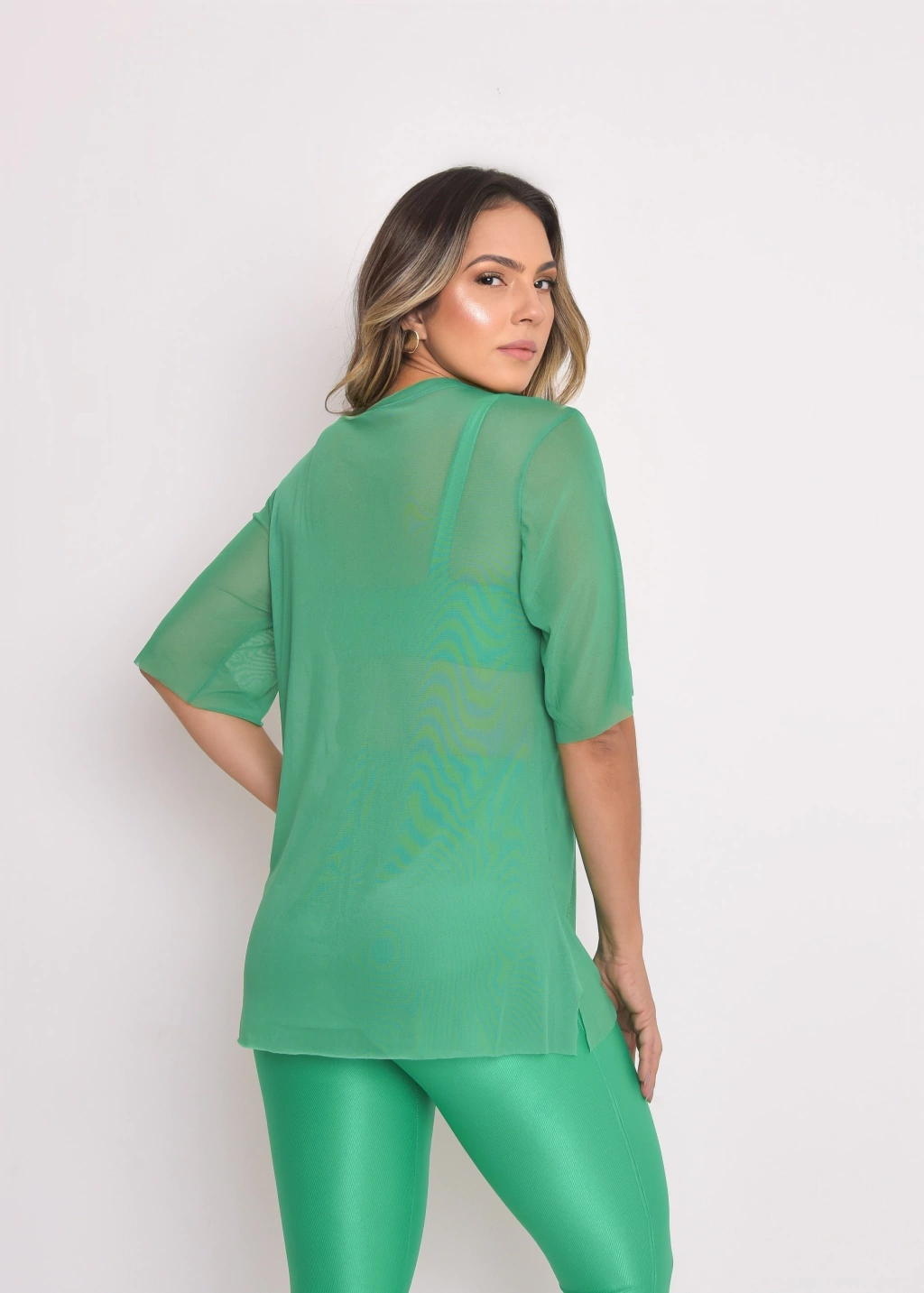 Mangas maiores com efeito fluido. Possui fendas nas laterais.
