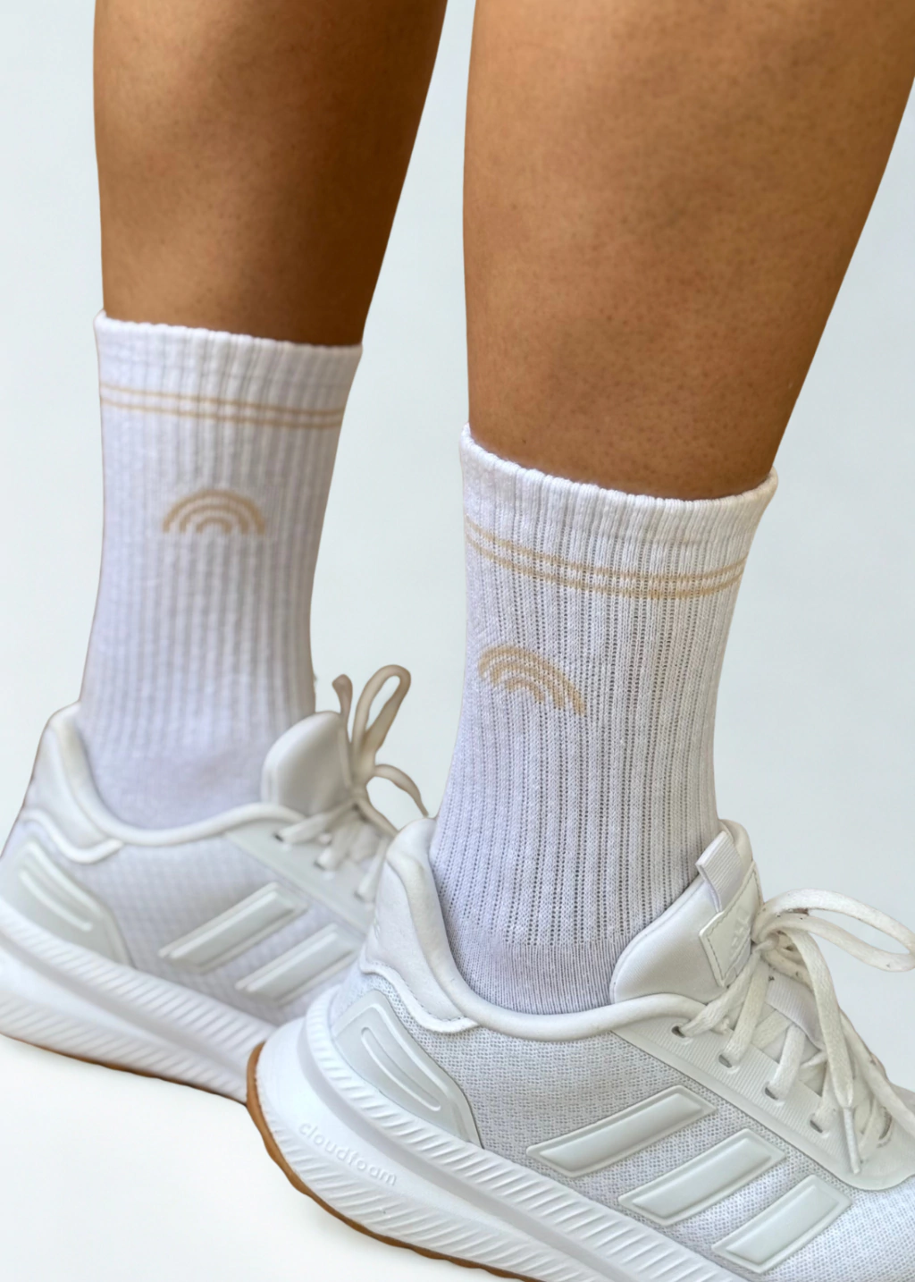 Além disso, não desbotam, não arregaçam e oferecem uma boa elasticidade, garantindo um ajuste perfeito sem apertar.O fio de algodão mais fino permite maior ventilação e controle da umidade, evitando o acúmulo de suor e mantendo seus pés frescos e secos por mais tempo.Com um design clean e a logo exclusiva Rainbow, essas meias são ideais para quem valoriza autenticidade e detalhes que fazem a diferença.