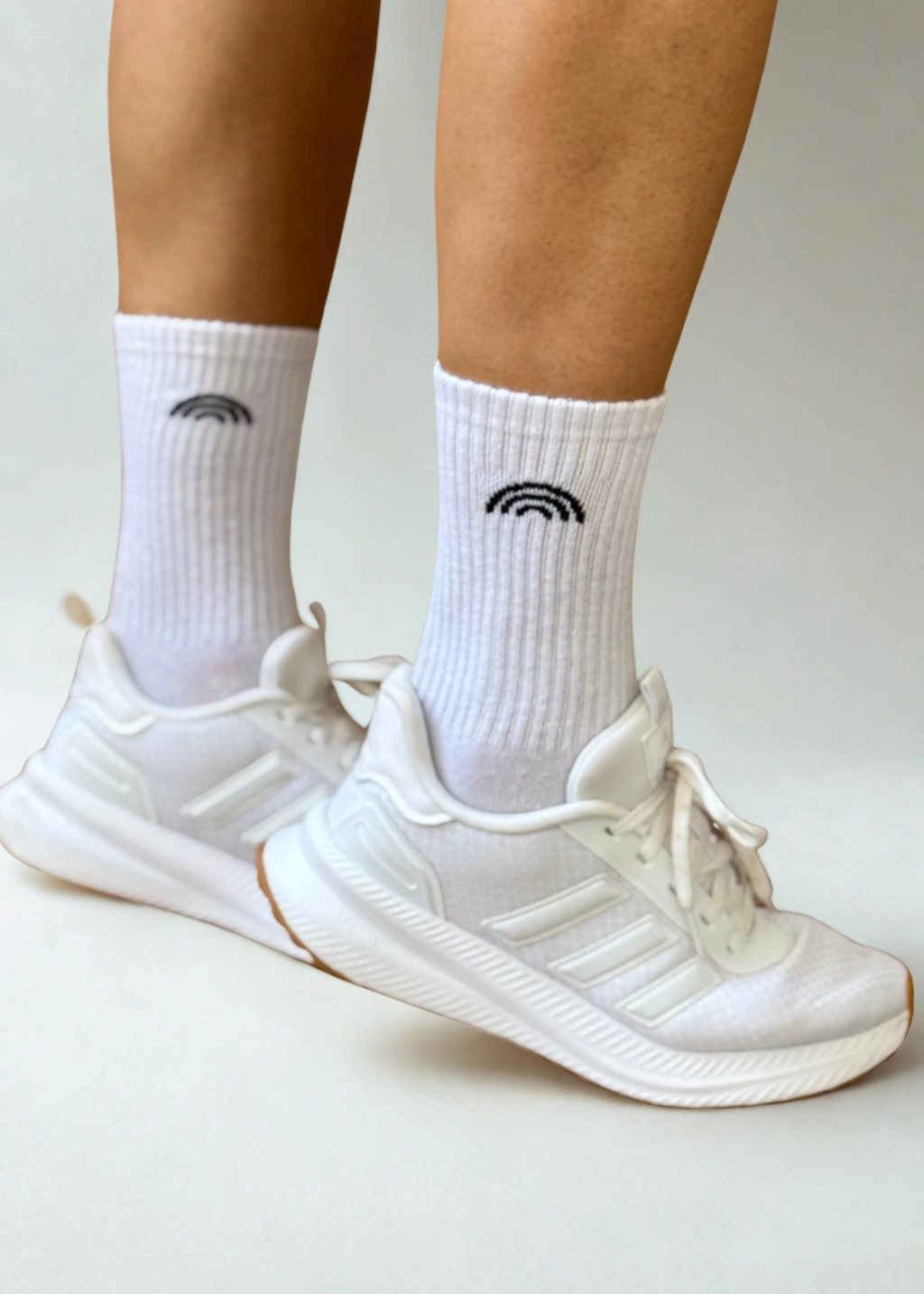 Além disso, não desbotam, não arregaçam e oferecem uma boa elasticidade, garantindo um ajuste perfeito sem apertar.O fio de algodão mais fino permite maior ventilação e controle da umidade, evitando o acúmulo de suor e mantendo seus pés frescos e secos por mais tempo.Com um design clean e a logo exclusiva Rainbow, essas meias são ideais para quem valoriza autenticidade e detalhes que fazem a diferença.