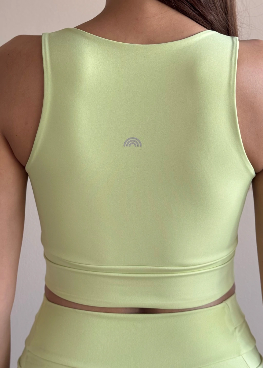 O design decote fechado, alças largas e barra e reforçada, proporciona firmeza e segurança para treinos de alto impacto.